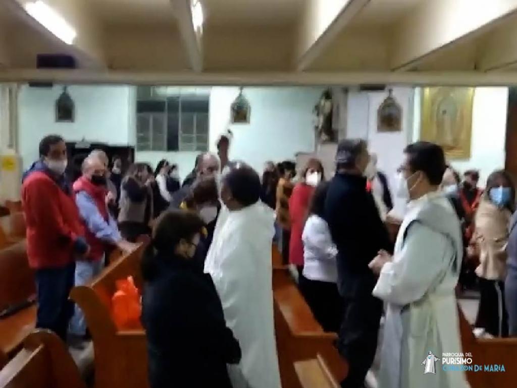 La celebración se llevó a cabo en la Cripta de la Parroquia e inició las 19:00 hrs. Comenzó con una procesión de entrada por el pasillo central presidida por Monseñor Carlos Samaniego, obispo auxiliar de la Arquidiócesis de México, y acompañada por el P. Jorge Garibay, Decano, el P. Luis Alejandro Monrroy López, Vicario Episcopal y distintos miembros de la Congregación de las comunidades de Ciudad de México entre los cuales destaca el Gobierno Provincial.