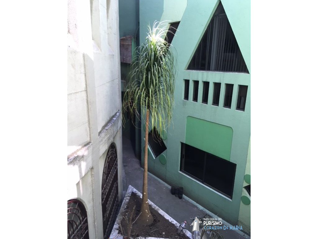 El mismo día que visitamos la Casa vimos unas plantas en el patio y también nos las regalaron. Ni tardos ni perezosos, quitamos de su lugar, con cuidado para no lastimar sus raíces, la "pata de elefante" y la "palmera" y las plantamos en el patio interior de la Comunidad.