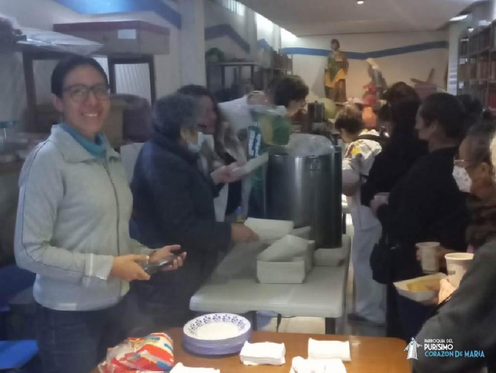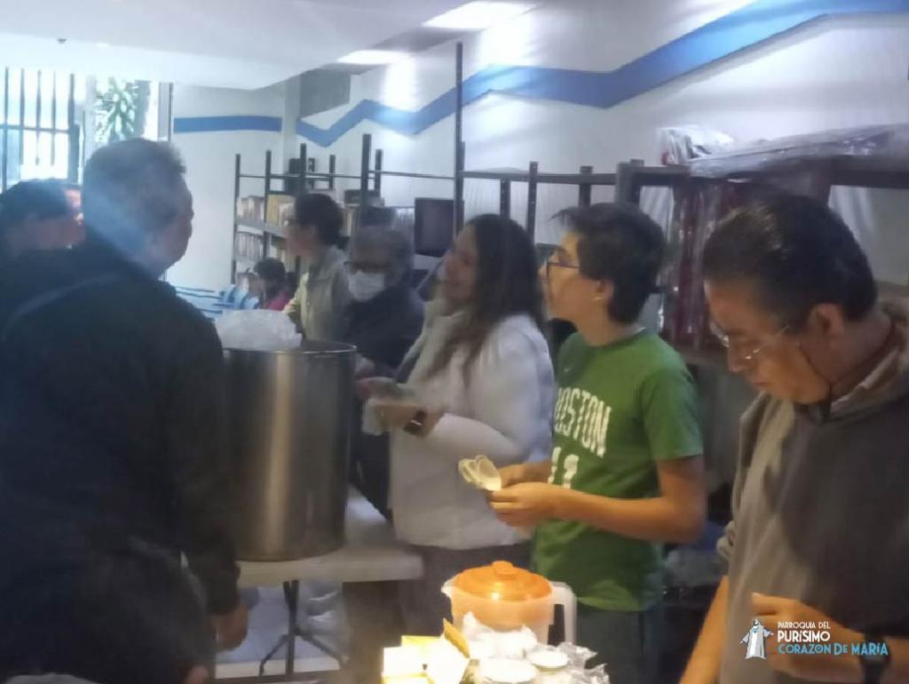 Posteriormente se celebró la Santa Misa presidida por el P. Lourdu Jerome, CMF, que se transmitió por el canal de Facebook de la Parroquia. Y para culminar esta festividad se llevó a cabo un pequeño convivio que estuvo coordinado por el Ministerio Socio - Caritativo que gracias a las donaciones y generosidad de los bienhechores de la Parroquia se pudieron compartir tamales, café y pan.